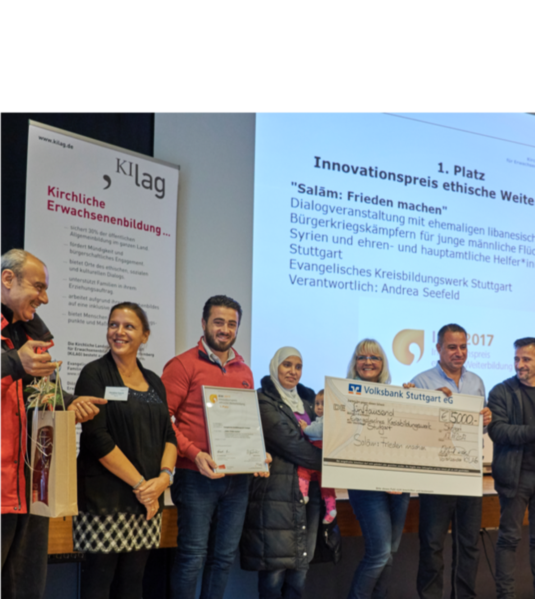 ولا تقتصر آثار الحروب والأزمات على المنطقة فقط، بل تمتد إلى أوروبا أيضًا. ففي ألمانيا، وكذلك في دول أخرى مثل المملكة المتحدة ودول اسكندنافيا، عملت منظمة محاربون من أجل السلام مع لاجئين ومقاتلين سابقين من المنطقة العربية، لا سيما من سوريا. وبالشراكة مع الكنيسة في ألمانيا، ساهمت المنظمة في العمل مع لاجئين سوريين للتخفيف من حدة التوترات بين مؤيدي النظام والمعارضة، وبناء أرضية مشتركة للحوار والتعايش. وقد تُوّج هذا العمل بحصول منظمة محاربون من أجل السلام على الجائزة الأولى للابتكار في التعليم عام 2017. (Innovative Education Award in 2017.)